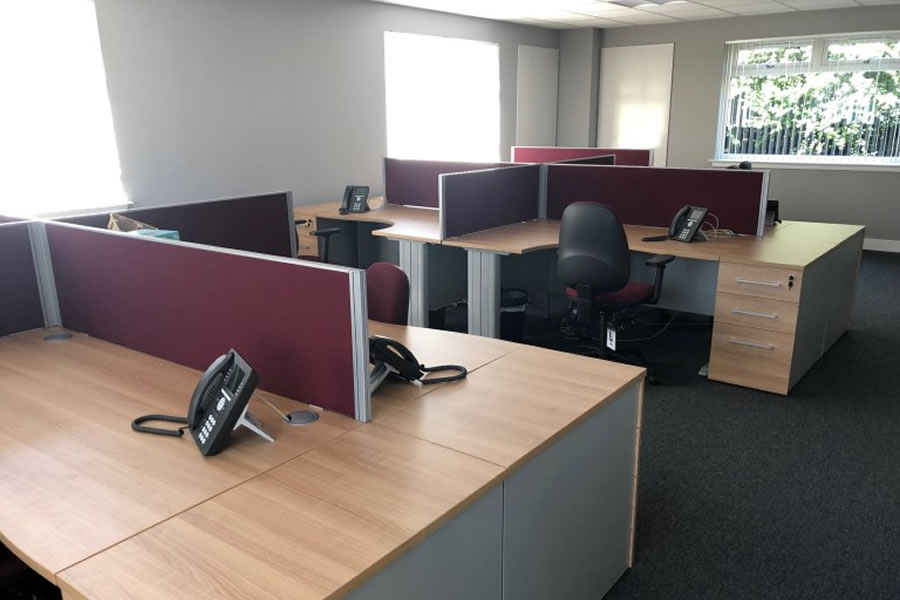 Then we furnished the open plan office area with Mobili Contrax desks and pedestals in contrasting Grey and Romana Cherry finish for a contemporary look. The fabric covered S2 screens provide privacy and noise reduction to help staff concentrate when they need to. Because Topaz offers a solution to a variety of functions and applications, we were able to select multi-function task chairs for the office, from this same range. In short, our project has resulted in an attractive, cost effective and robust solution for a busy organisation.